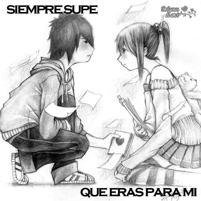 “Siempre supe que eras para mi” es una frase conmovedora que un chico enamorado profesa a su amada y la imagen que lo acompaña hace notar que la mirada de ambos se ha entrelazado para siempre.